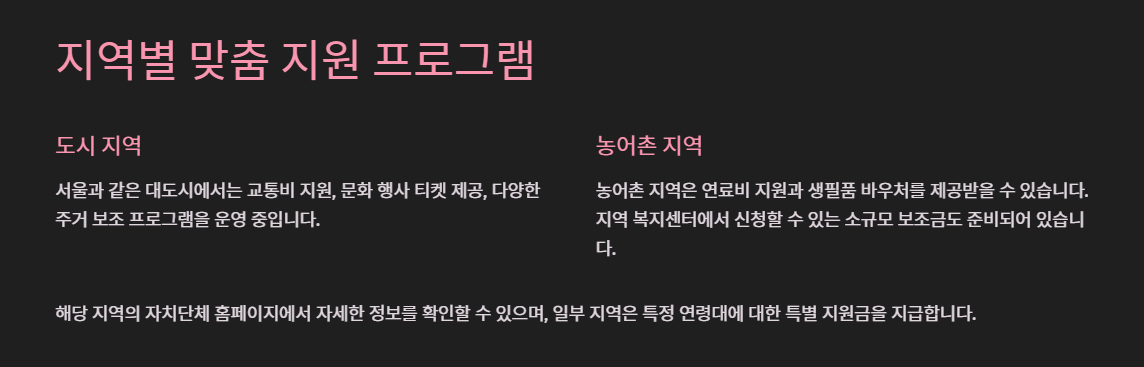 지원금 종류와 혜택 내용은 지역과 연령 조건에 따라 다릅니다.