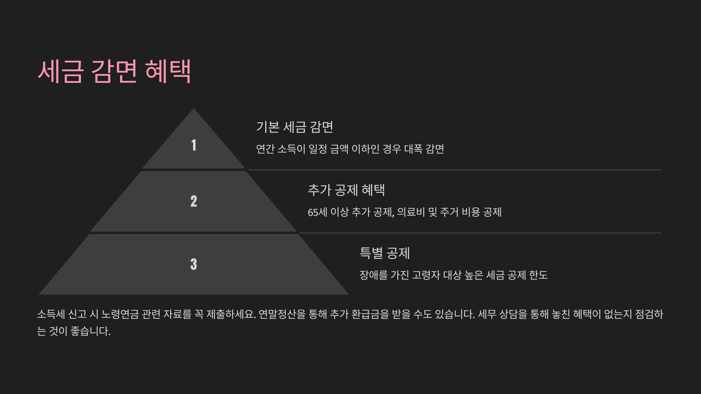 노령연금을 받는 분들은 세금 감면 혜택도 누릴 수 있습니다.