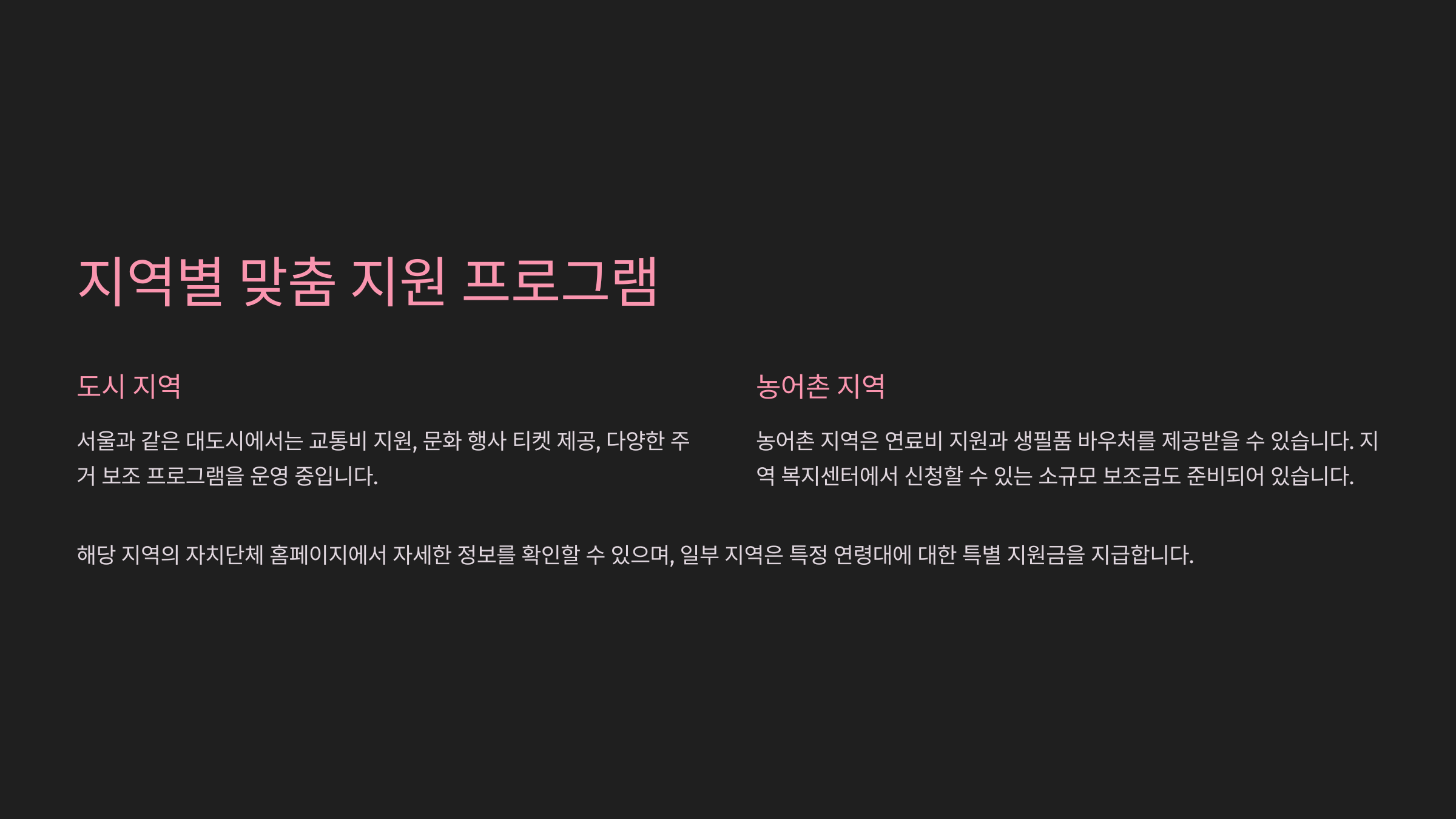 지원금 종류와 혜택 내용은 지역과 연령 조건에 따라 다릅니다.