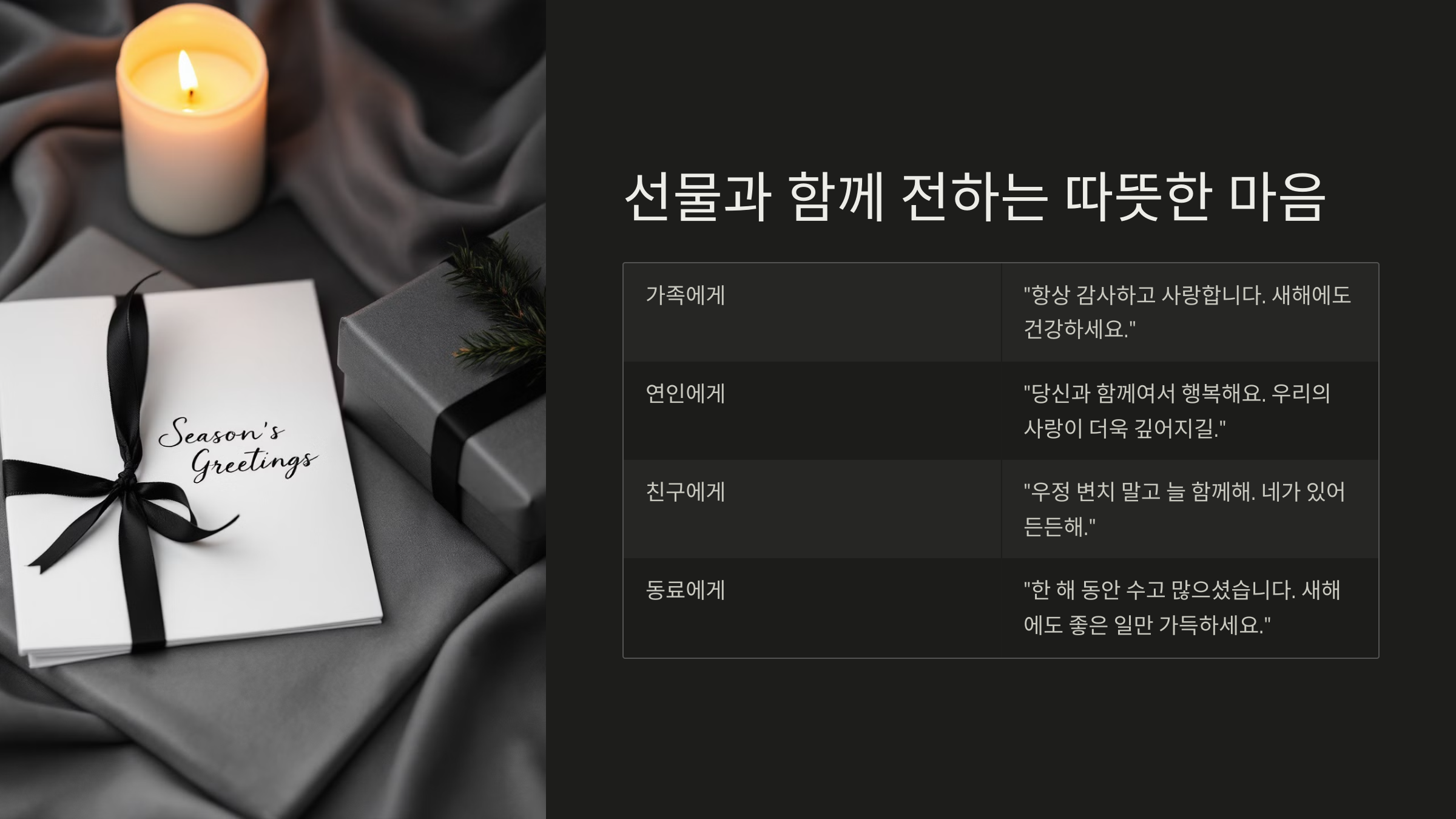 크리스마스 선물은 단순히 물건 이상의 의미를 가지고 있으며, 정성과 진심을 담아야 더욱 빛을 발합니다.