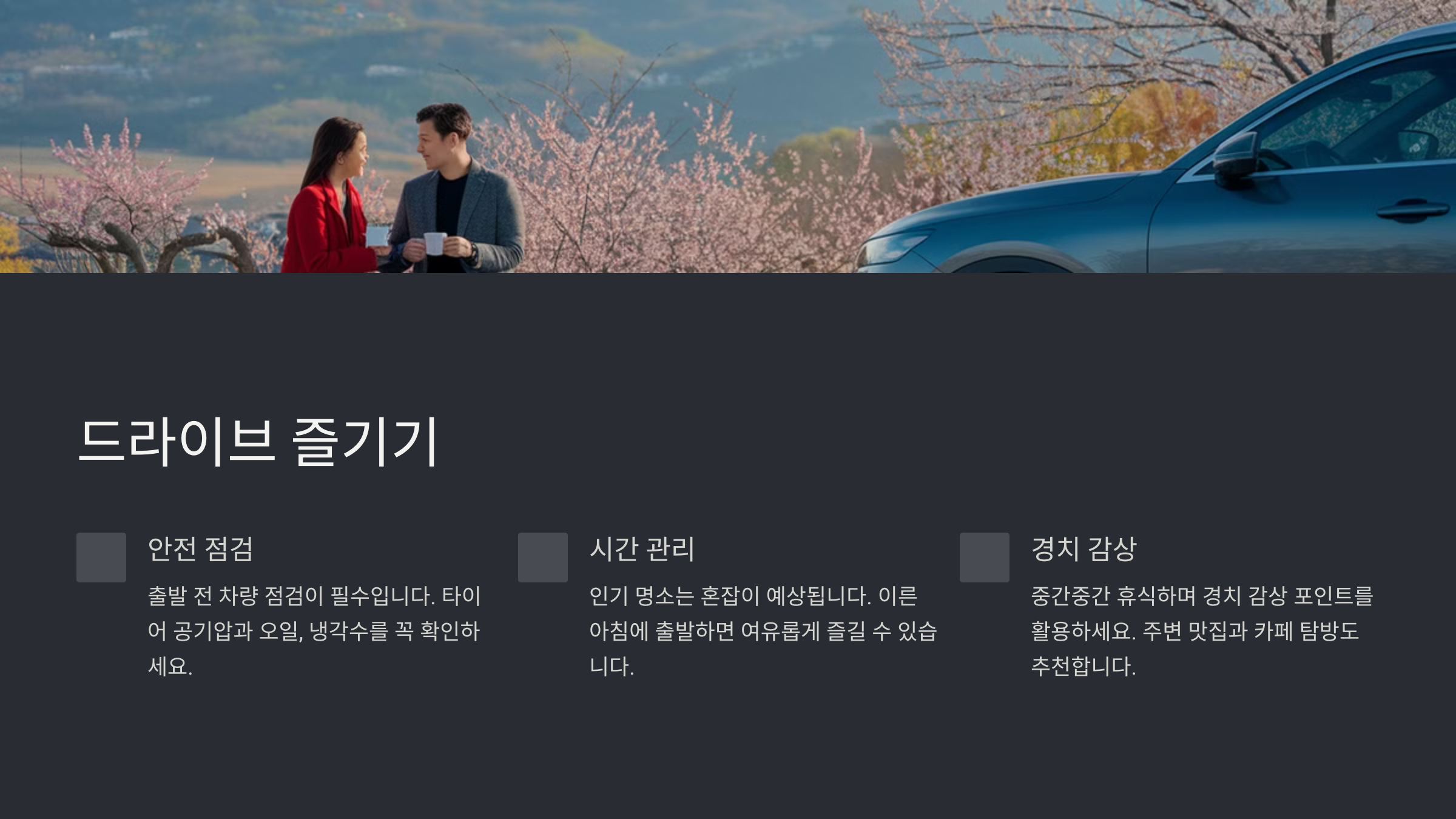 봄은 따뜻한 햇살과 산들바람을 맞으며 드라이브하기 딱 좋은 계절입니다. 특히 꽃이 만개하는 시기이기 때문에 아름다운 경치를 감상하며 도로를 달리는 것만으로도 기분이 좋아지죠. 봄 드라이브 코스를 고를 때는 벚꽃이 흐드러지게 핀 도로,