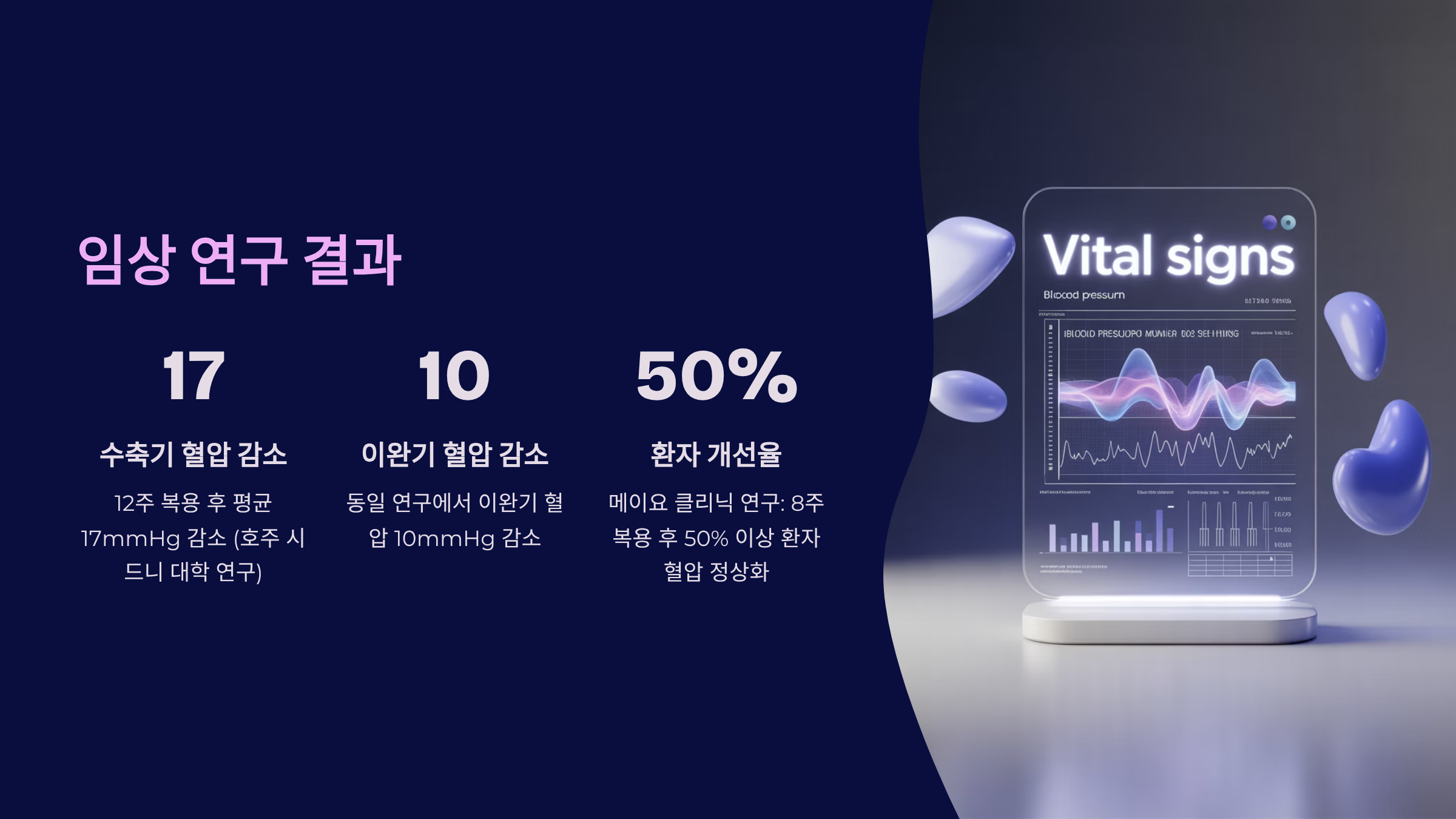코엔자임Q10의 혈압 개선 효과는 실제로 여러 연구를 통해 입증되고 있어요. 가장 많이 인용되는 연구 중 하나는 2007년 호주 시드니 대학에서 발표된 메타분석 결과인데, 이 연구에서는 Q10을 12주 이상 복용한 고혈압 환자들의 평균 수축기 혈압이 17mmHg, 이완기 혈압이 10mmHg 정도 감소했다고 밝혔어요.