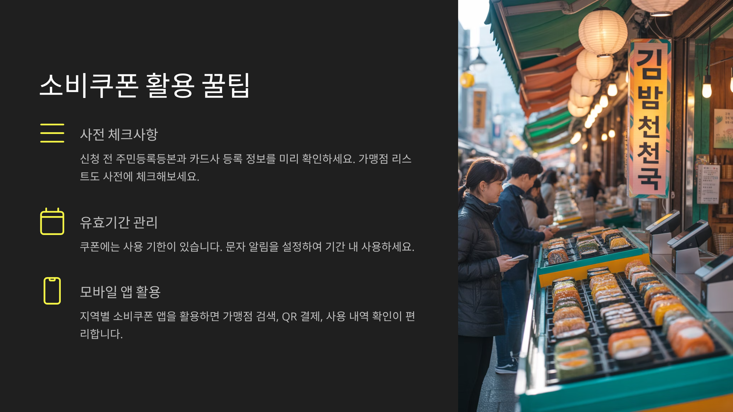 소비쿠폰을 제대로 활용하려면 몇 가지 꿀팁을 알고 있는 게 중요해요! 단순히 신청만 하고 잊어버리면, 사용할 수 있는 기회를 놓칠 수도 있거든요. 아래 팁들을 꼭 참고해보세요 😊
